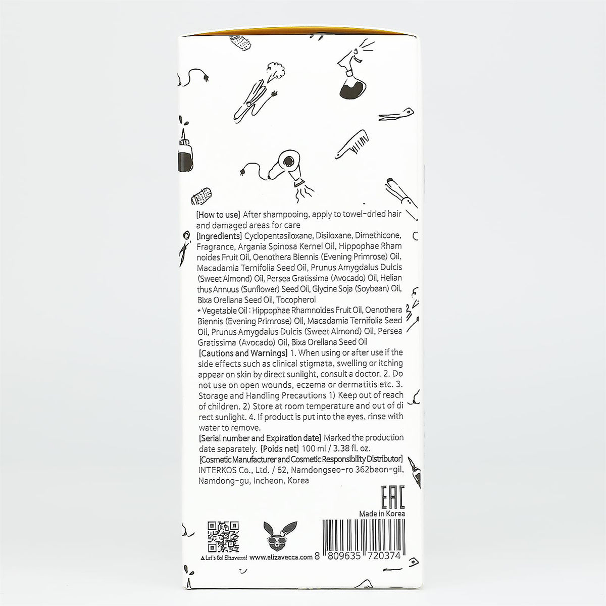 Aceite capilar de la línea CER-100 de Elizavecca, diseñado para complementar la rutina de cuidado del cabello. Su textura ligera facilita la aplicación y se distribuye fácilmente de medios a puntas.