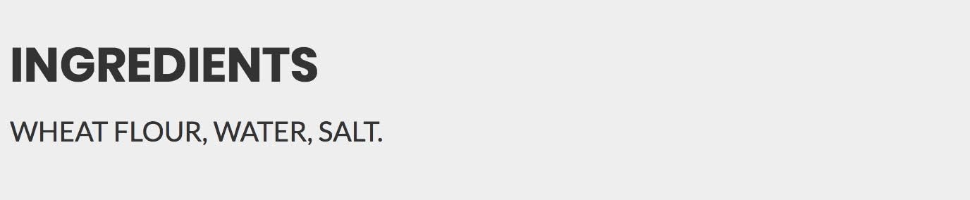 Ingredientes: Harina de trigo, agua, sal.