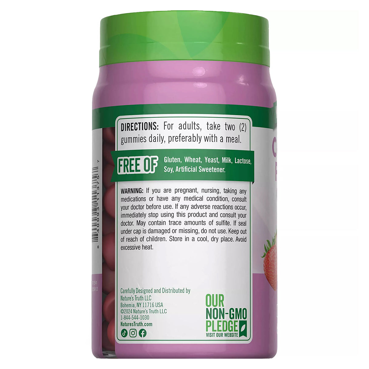 Nuestra misión en Nature's Truth es satisfacer sus necesidades de bienestar con productos que van más allá. Nature's Truth ofrece suplementos en diversas formas de presentación, como cápsulas, geles blandos, masticables, tabletas, polvos, líquidos y gomitas para adaptarse a todos los gustos. Nuestras gomitas de péptidos de colágeno no están modificadas genéticamente y no contienen gluten, trigo, levadura, leche, lactosa, soja ni edulcorantes artificiales.