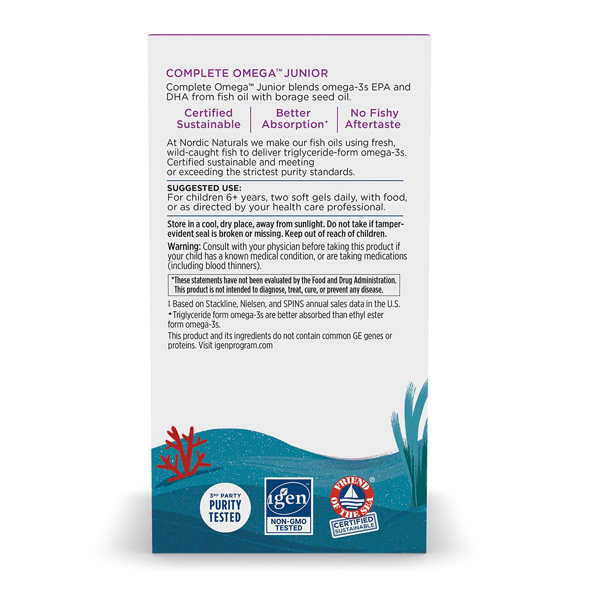Nordic Naturals Complete Omega Junior, 283 mg de Omega, 90 mini cápsulas sabor limón para 3 meses