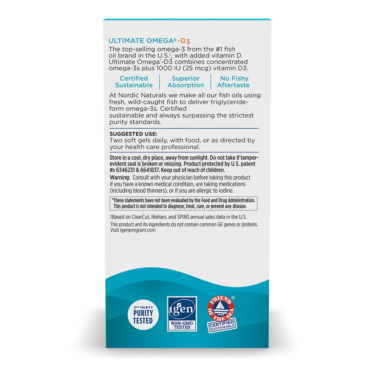 Nordic Naturals Ultimate Omega D3, 1280 mg de Omega + 1000 IU de vitamina D3, 120 cápsulas sabor limón para 2 meses