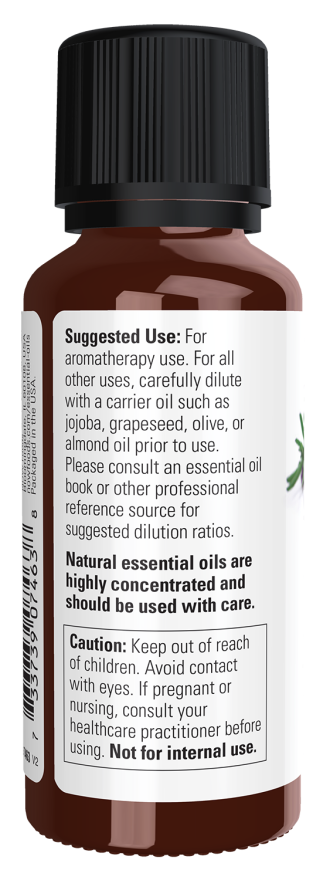 Sugerencia de uso: para uso en aromaterapia. Para todos los demás usos, diluya cuidadosamente con un aceite portador como el aceite de jojoba, semilla de uva, oliva o almendras antes de usar. Consulte un libro de aceites esenciales u otra fuente de referencia profesional para conocer las proporciones de dilución sugeridas.