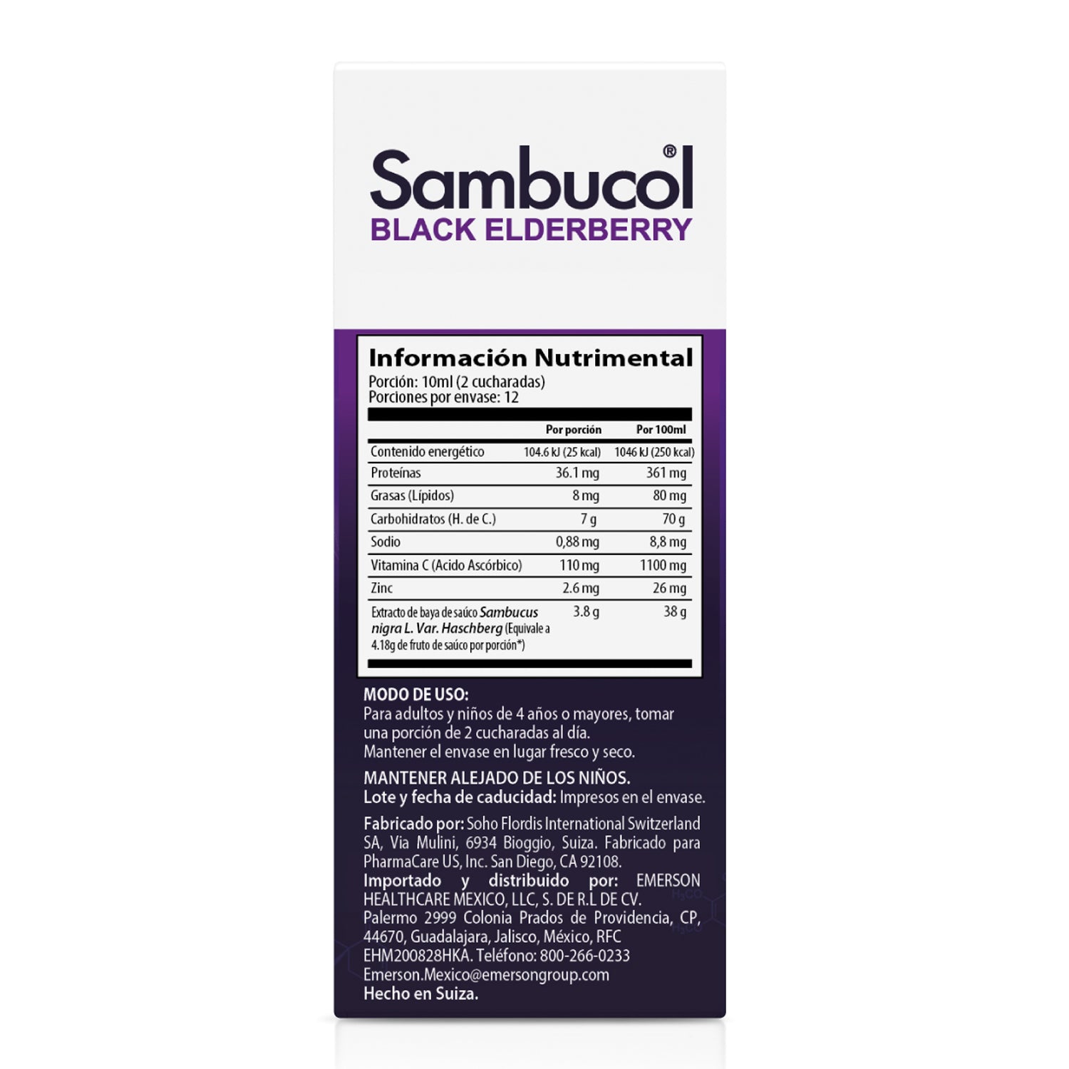 Este delicioso jarabe contiene contiene bayas de saúco negras, adicionado de vitamina C y zinc.
