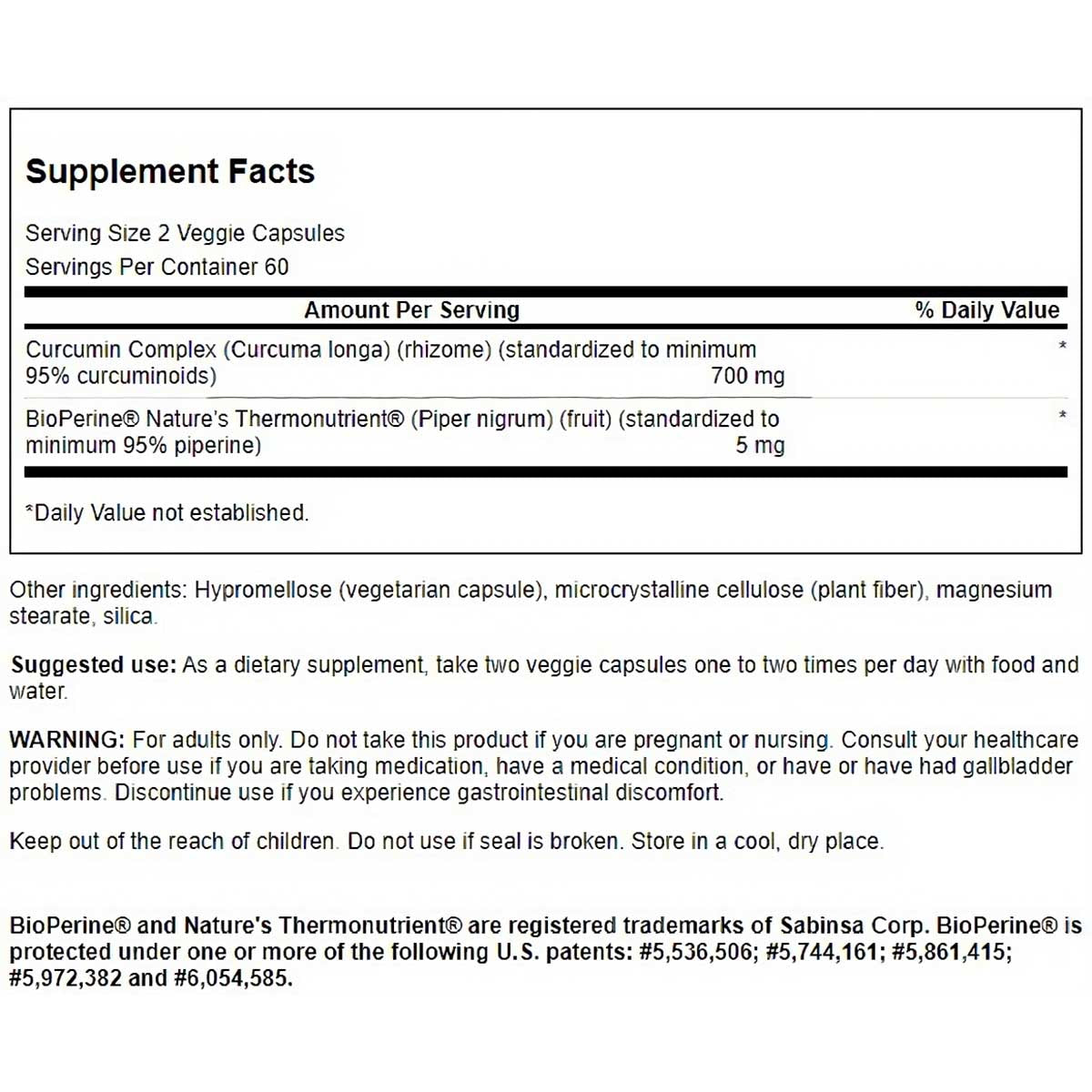 Swanson Complejo de curcumina - Estandarizado con BioPerine, 120 cápsulas para 2 meses